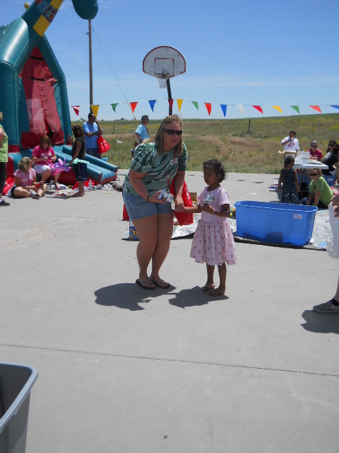 Danielle and Sarah–doing dental care demos and practice on hard boiled eggs soaked in coke. The kids loved this! Ashlie with a new friend–had to find this little one a pair of shoes–that concrete was hot and she did not have any shoes on.