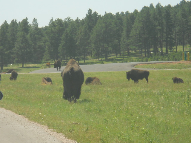 We visited Custer State Park after leaving Pine Ridge–the park has a wildlife loop where you have the opportunity to see many animals from the safety of your car. This was a new experience and enjoyed it quite a bit. We saw buffalo, prairie dogs, pronghorn antelope, and wild burros. The burros were not terribly wild though–they come up to your car and stick their heads in the windows looking for free snacks. Fun! We made the requisite trip to Mt Rushmore and then stopped in Keystone for some brief shopping (rained during this time). After that a nice dinner at the Golden Corral in Rapid City and on to the hotel for the night…everyone was ready to get out of the van and relax! Today is Lindsay’s Birthday so there was an impromptu and unplanned get-together for this–I gave her a wooden horse to commemorate the horseback ride from earlier in the week!
