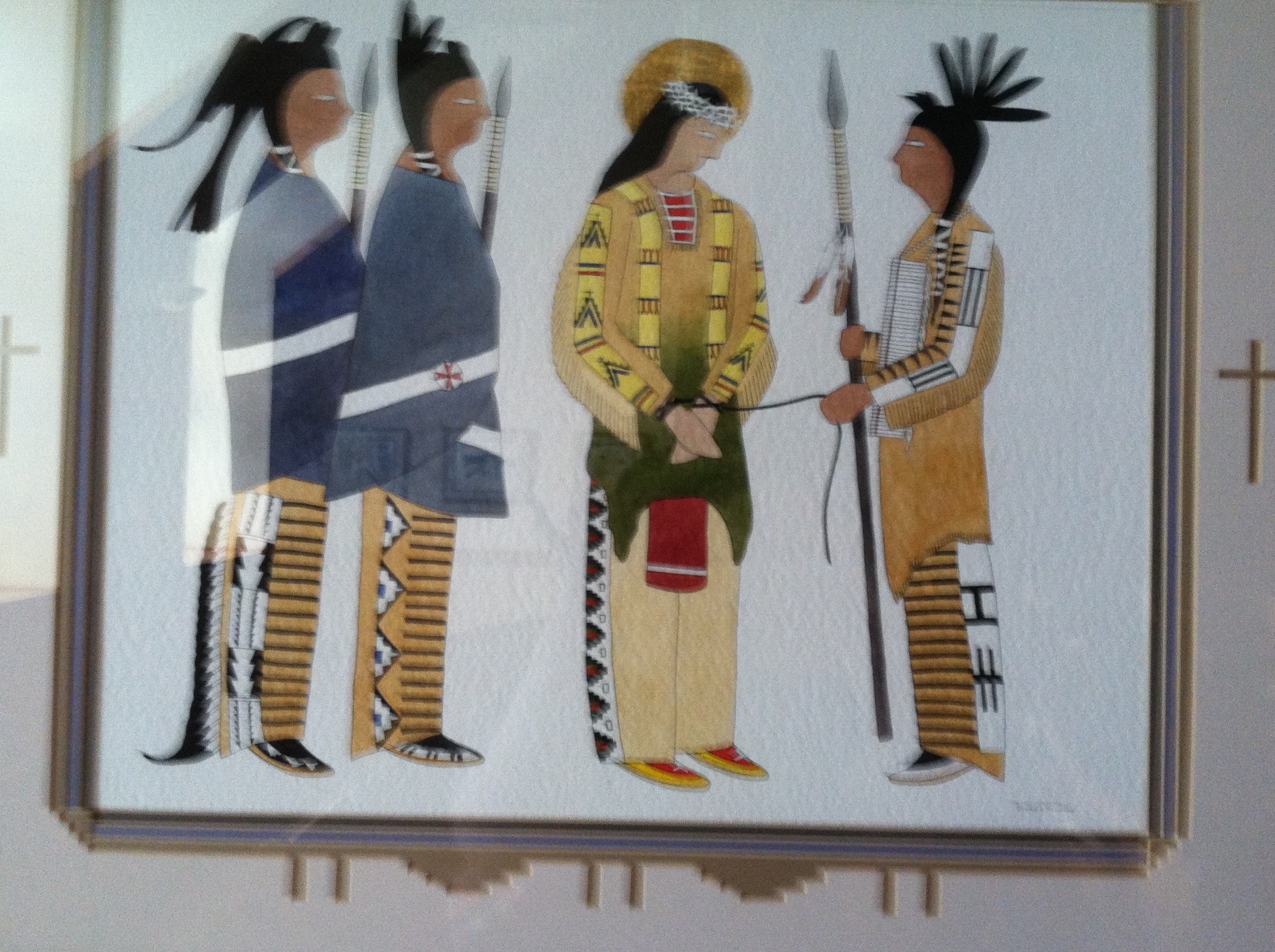 We visited the Oglala Lakota College Nursing Program also, and although I miss my friend Joan Nelson who retired in June, we received a warm welcome from the new director, Michelle Bruns. After hearing about the college’s program and getting an idea of how their program is similar and also different from the one at Methodist, we traveled on to the Red Cloud Heritage Center. A visit to the most beautiful church that I have ever seen and more amazement about the displayed artwork was part of this activity.