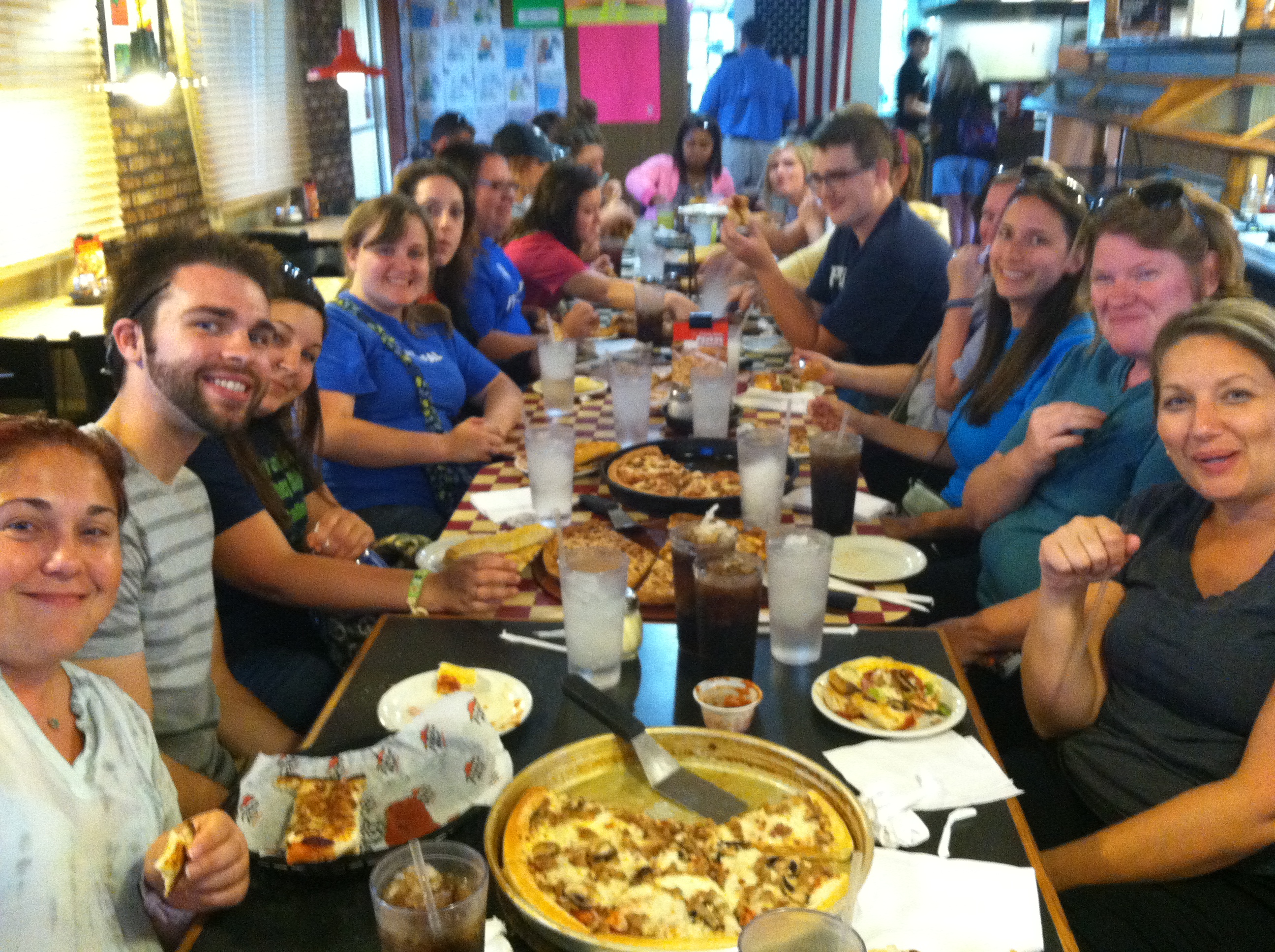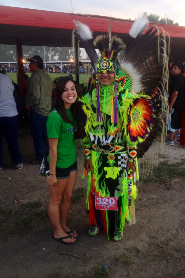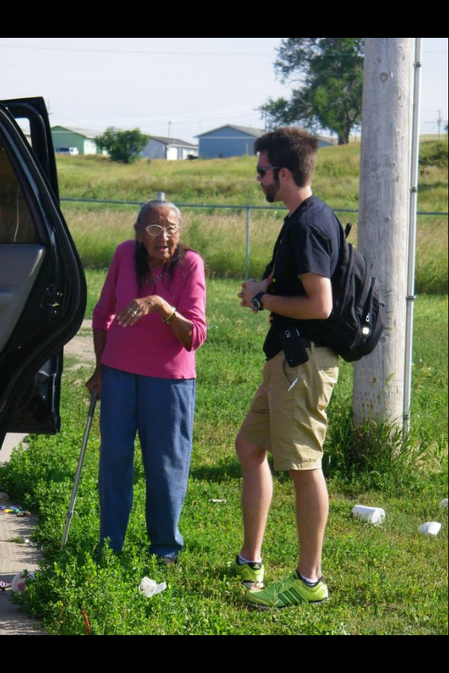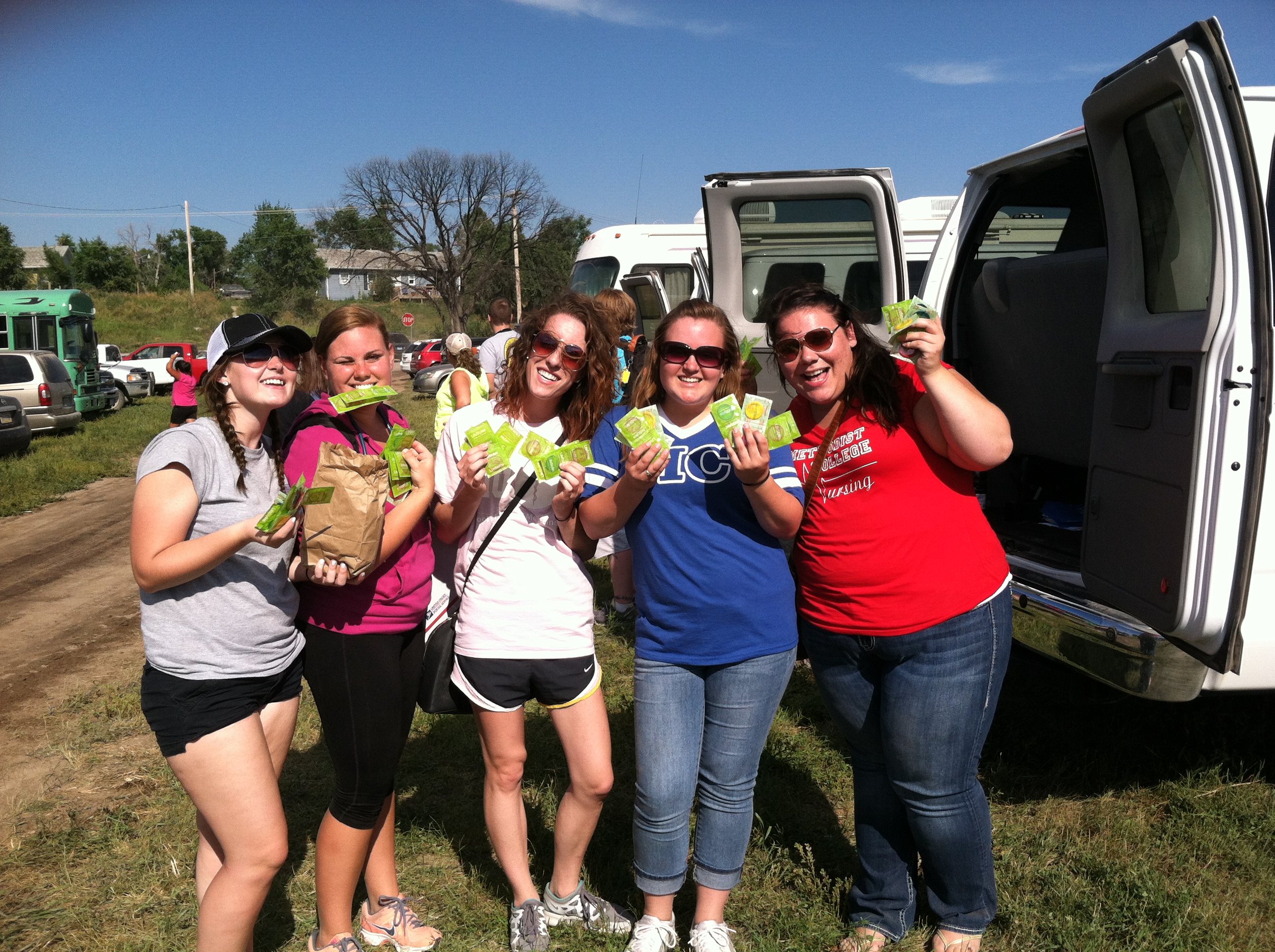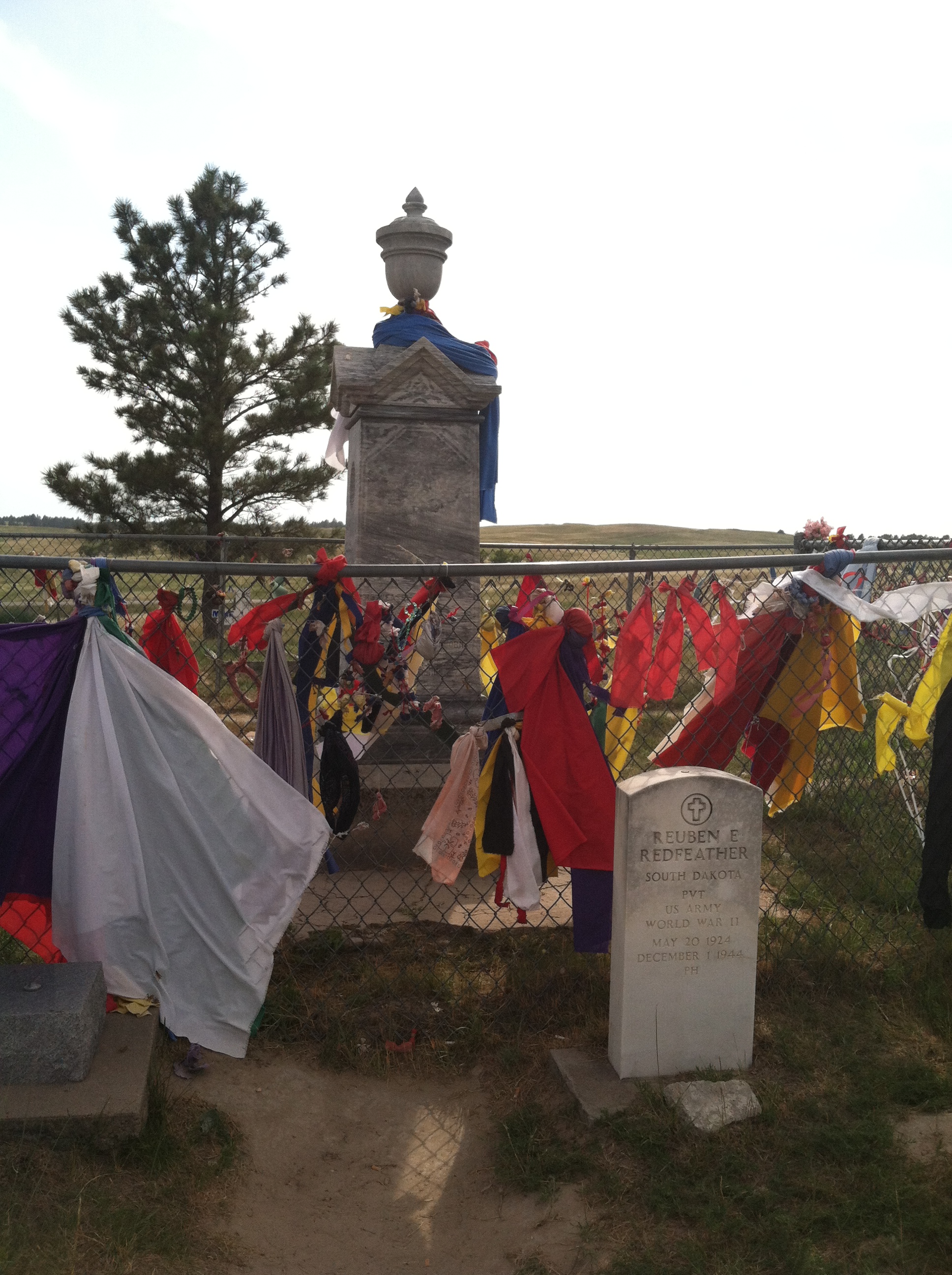 Between shuttling riders to Tyler’s house, the other groups received a beading lesson from Verola Spider, Verola’s daughter, Angel, and another friend Alyssa. Rosie’s is such a calm and relaxing environment–couple that with a beading lesson, and you have a very zen afternoon. I have a student on the trip who is originally from Uruguay, and she is quite the entertaining talker. During beading, she was quiet for the first time of the trip. Many of the students were able to finish their bracelets and now have a much better understanding of the amount of time and attention to detail that goes into Lakota artwork. We had amazing teachers and our conversations with them were certainly the high point. Verola is an amazing person with a calm spirit. She has a very large family (10 children) and many, many grandchildren. In the fall she will begin working as a teacher at the Head Start in Manderson. Her daughter Angel plans to return to college to earn her Masters degree in counseling at Lewis and Clark University in Portland, Oregon. Angel shared with us part of her pow wow regalia which included some of the most beautiful beading that I have ever seen. Our third teacher was a girl who will be entering 12th grade in the fall. She is the same age as my son, but her life is so much different. She lives with her grandmother and has experienced the difficulties of having a family member with a substance abuse problem. She is a bright and beautiful girl who plans to attend college for social work. She was a pleasure to talk to, and one of our students really made a connection with her. She gave us her contact information, and many of the group plan to stay in touch to offer her encouragement. As we were preparing to leave, Rosie asked if we could provide any assistance to Alyssa’s family as they were about to have their electricity turned off. We gave Alyssa all of what was left of our donated money–not quite enough for the bill, but hopefully will help. She was very giving to us–sharing information on traditions, her daily life on Pine Ridge, her hopes and dreams–how could we not try to give a little in return? We always take more, unfortunately.