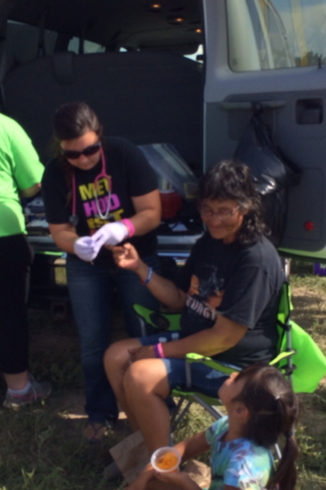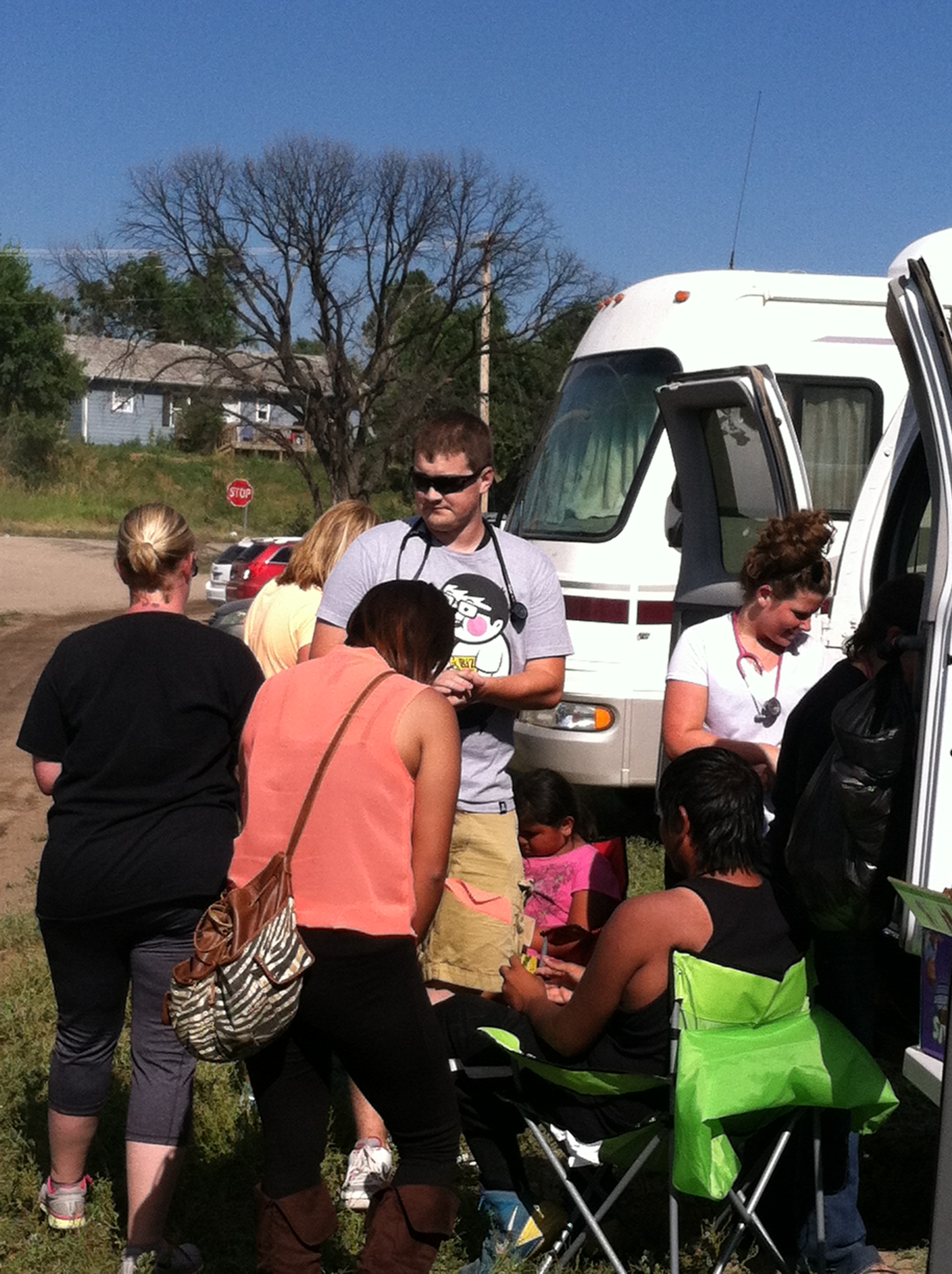 After a busy day, we wanted to fit in just a bit more health promotion. We stopped in Wounded Knee at a small apartment complex. This is a first, but students actually knocked on doors and invited people to come visit us in the parking lot. We had many children and some adults come out to visit. Kids received new shoes, physical activity equipment, and art supplies. After throwing the football and hula hooping and talking to residents of the complex, we had given the rest of our donations out. The kids are always such a joy. One of the students mentioned that she noticed that while the children here seem happy and have smiles and hope, the adults appear to be worn down, do not smile often, and appear stoic. She wondered at what point the Lakota lose this happiness and hope. After talking to Alyssa, our beading teacher, and hearing about her struggles, unfortunately, joy is often lost before the kids reach adulthood. Family and tradition and a sense of community are what keep many going, it seems. The students have had many excellent insights, and it has been a pleasure to work with them.