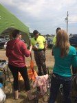 Because of our interest in screenings, we ran late to our next health promotion site. After a quick call to the Allen Youth Center Director to let him know that we were running late, we were on our way, on another new adventure. I have never been to Allen on any of my previous trips to the rez. Of course, this new venture turned into something exciting–the main road into Allen is being expanded and after sitting in a mini-traffic jam on a dirt road that had earth movers crisscrossing back and forth, we finally made it to the center. We received an extremely warm and welcoming greeting from Travis Thunder Bull, the center director. Initially, we had about 9 children and 5 adults present to receive some health education on first aid, CPR, and diabetes. Over the course of our time there, our audience grew to 17 children. Each of the teams of students took turns providing their education in a very informal, hands on way. While our audience of kids were initially quite shy, they warmed right up after finding out that we had some basketballs, footballs, etc. as prizes! We also provided a healthy meal, which Stormi, cooked–we did pulled pork sandwiches on whole wheat buns, vegetable soup, and fruit. The food was a hit, and after the meal, the students spent some time playing with the kids, showing them how to use a stethoscope, etc. After a challenging trip to the center, where more than one student voiced disbelief that we would actually get there, many asked if we could either stay or come back. Schedule permitting, we may actually try to go back at the beginning of the week.