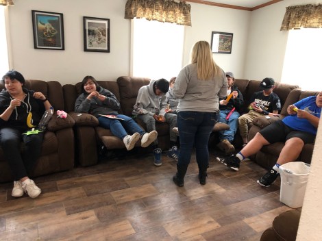I returned to the extended class as things were wrapping up with several of the girls having found their dress for prom. One of the girls was super thankful, stating that she had been trying to save money to get a dress and by getting one of ours, she would be able to use the saved money for other things that she needs. While I missed the try on, this girl found a beautiful coral colored sparkly dress and when viewing herself in the mirror exclaimed, “I look like a F!$%*^@ princess!”. She also decided to ask one of the guys in the class to prom while we were there, so we got to witness a promposal—it was great! He got a shirt and tie, and she told him that she would braid his long hair for prom. Love it!