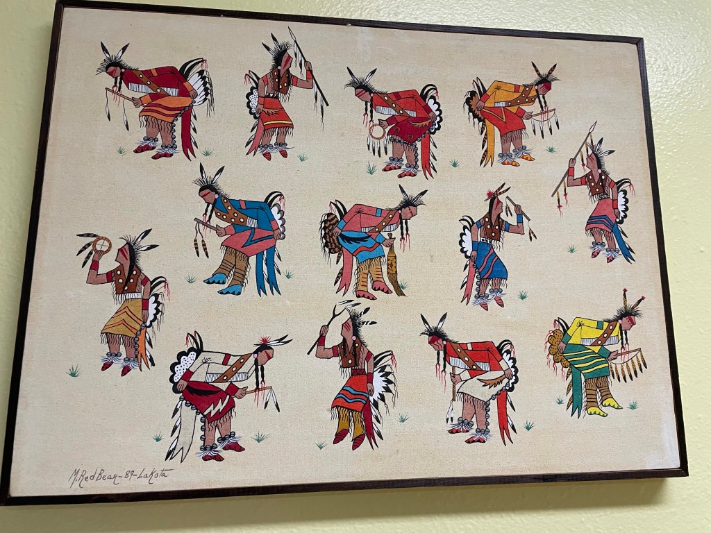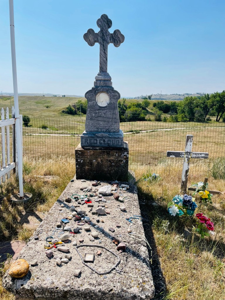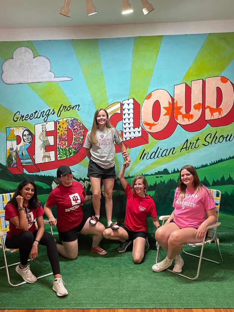 Wednesday was our last day on the rez.  We started out with a guided tour of Red Cloud Indian School.  I’ve been to Red Cloud so many times but never actually toured the whole school/grounds.  This visit helped to fill in some of the gaps related to history and culture of the Lakota—with no pow wow and not being able to visit the OLC Historical Center, I do feel that the students are missing some important information.  Again, we’re doing the best we can with what is available.  Anyway, the chapel was beautiful and peaceful as always, and I climbed the hill to spend some time at Red Cloud’s grave for the first time.  We ended the tour in the Heritage Center and met a recent grad from the OLC Nursing program that I tried to give a brief pep talk to about NCLEX.  You never know when you will need to bust out a pep talk!