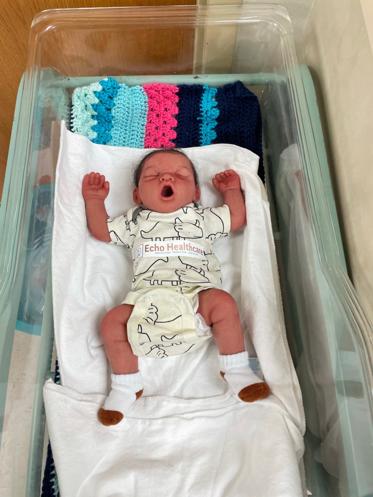 After Red Cloud, it was on to the OLC Nursing Department for a visit with Michelle.  Since I last visited, the program has received accreditation for the first time in their history.  With only four faculty members (one of which serves as acting director of the program), I can only imagine the long hours and hard work put into this achievement.  We compared notes about how COVID-19 has impacted the program and their experiences, and it sounds like they have had to adjust to the Zoom way of doing things for lecture as well.  They will be in-person this Fall though.  The most exciting part of this visit was seeing the new simulation manikins in their sim center.  They have two new manikins—an elderly patient and an infant.  The manikins are made by Lifecast, a company that has done manikins for some Star Wars movies.  These manikins were SO life-like compared to the usual; we spent quite a bit of time oohing and aahing over them!