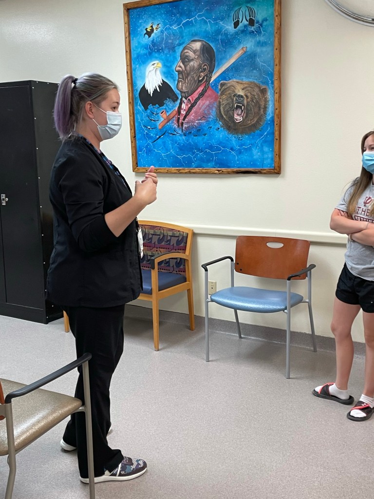 Our last event of the day was a tour of the IHS Clinic in Kyle, led by our alum extraordinaire, Suzie.  The students got to see it all, meet other providers, get words of wisdom about nursing, and hear all about nursing in this very unique setting.  Suzie is so obviously a leader, with clear dedication to patients and outstanding nursing skills—very proud to see her thriving and making a difference.