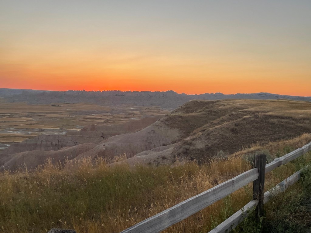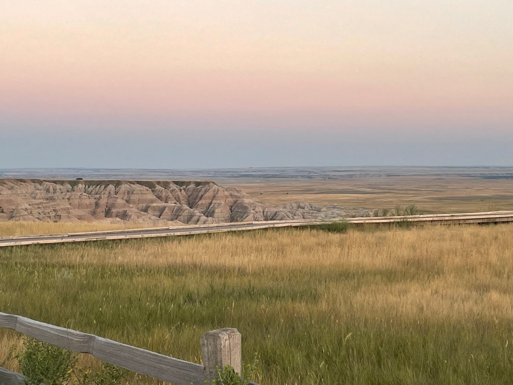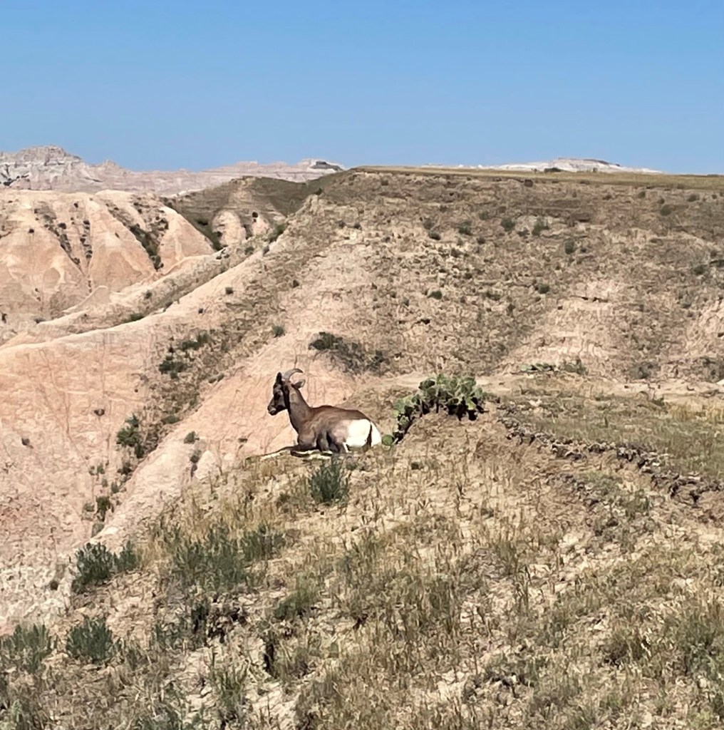An evening trip into the main part of Badlands National Park was the request after dinner. The light was perfect and every stop and view was better than the previous. We did a lot of stopping for photos as the sunset inched closer. We were able to see ALL of the animals-prairie dogs, bighorn sheep, pronghorn antelope, mule deer, coyote, and an owl. The Wild Kingdom part of the trip came when we saw a coyote running full tilt toward a lone deer. I thought that we were going to witness a predator kill in real time. I actually honked the horn to try to get the deer to move-being a bystander to this was not going to happen. Thank goodness the deer finally decided to run into the hills, but it let the coyote get within about 5 feet first. This circle of life moment was almost too much for me! Our day ended with the reward of a breathtaking sunset.