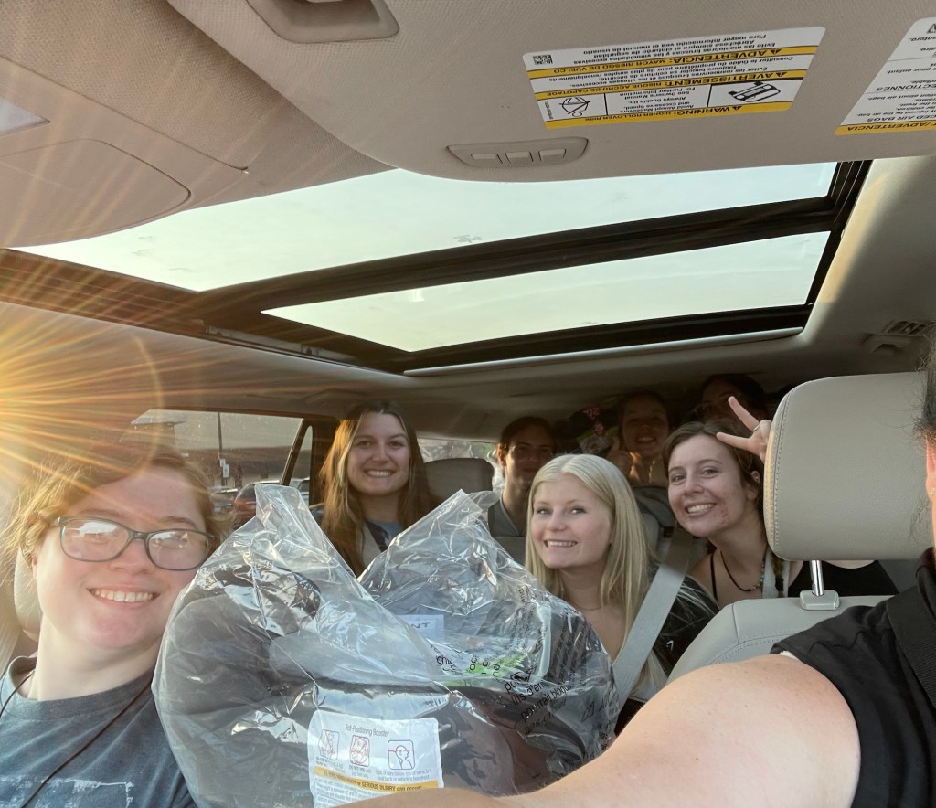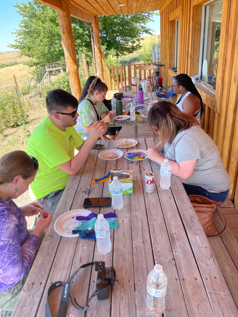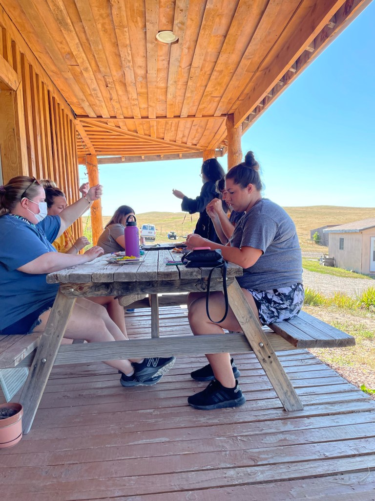 The years have passed quickly and the travelers continue to change, but today marks my 22nd trip to Pine Ridge. I haven’t blogged in several years, I guess that I will chalk it up to an extended pandemic hiatus and an overall individual reset. With this time passage, changes, and reset, I have given in to the need to fly instead of taking the 18-hour one-way drive that would allow me to pack so much more. So with that, I left the Louisville airport to fly to Chicago and on to Rapid City with 7 energetic and somewhat anxious students and one overweight suitcase (mine). We nearly missed our connection in Chicago-thankfully a brisk walk rather than an OJ Simpson Hertz commercial sprint through the airport was enough to make it before the plane’s doors were closed. We made it! Our rental SUV barely fit all of us and our luggage even though I was the only one who overpacked so we had to drive to our lodging (new digs this year-cabins at the Badlands KOA). A quick offload and perusal of the surroundings, and we were off again for the big Walmart shop. I gave the students the option of staying behind to relax rather than another 1.5 hours in the car each way to Walmart, but they all wanted to go. A great sign for the group that they will be able to go with the flow. 45 minutes of tag-teaming the Walmart shopping, and we were packed to overflowing and ready to head back to the campground. Also worth mentioning was the harvest of some quills from a road kill porcupine near the campground. A very full and interesting first day as always!