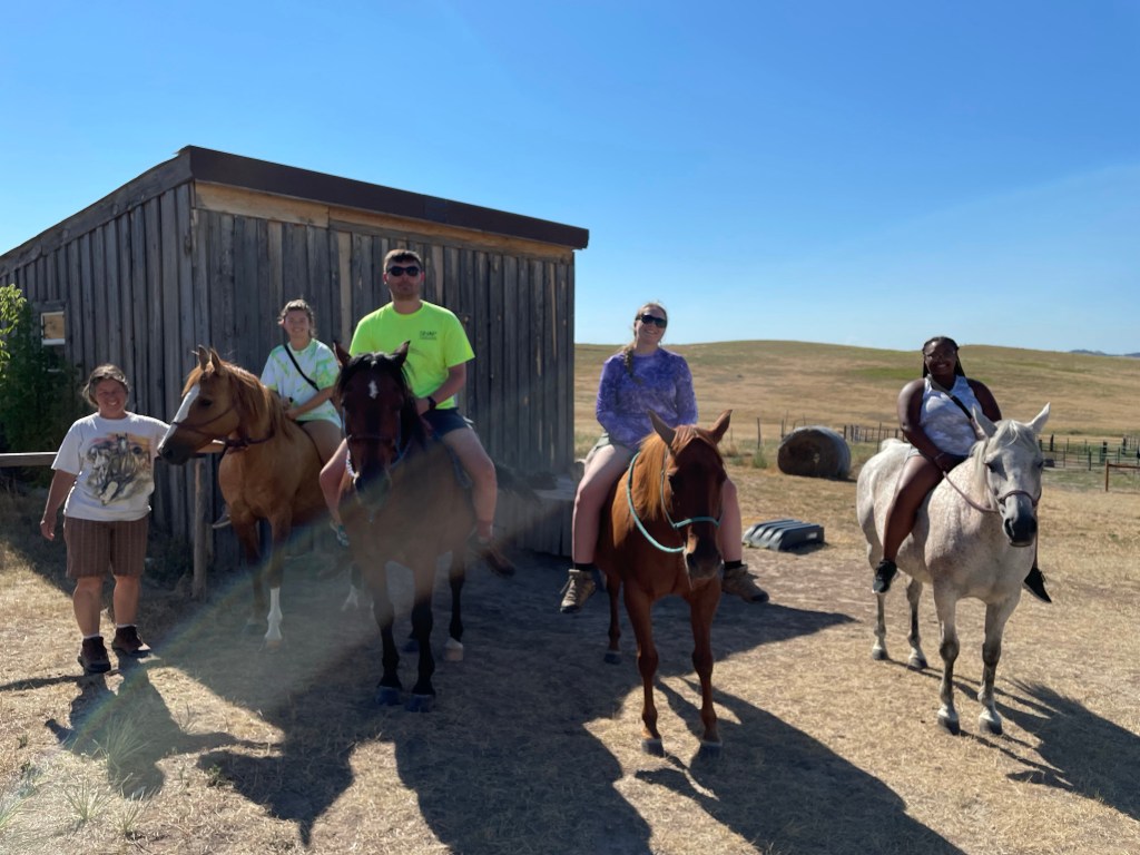 With Tuesday, one of the most anticipated days arrived—the day for horseback riding. Unfortunately, the weather has heated back up with temps anticipated to be 100 degrees. With this weather, outside activities must happen early so we headed to Singing Horse Trading Post bright and early at 7am.