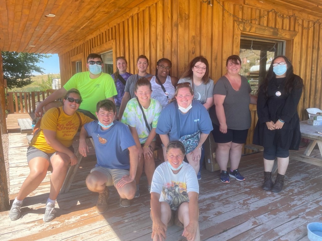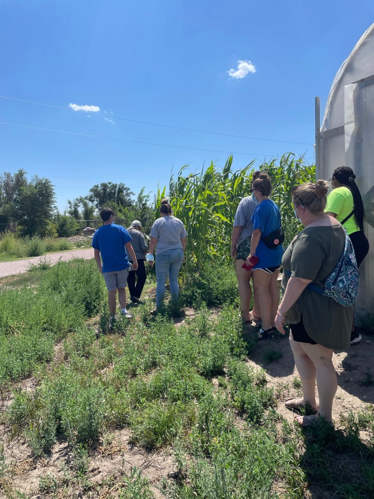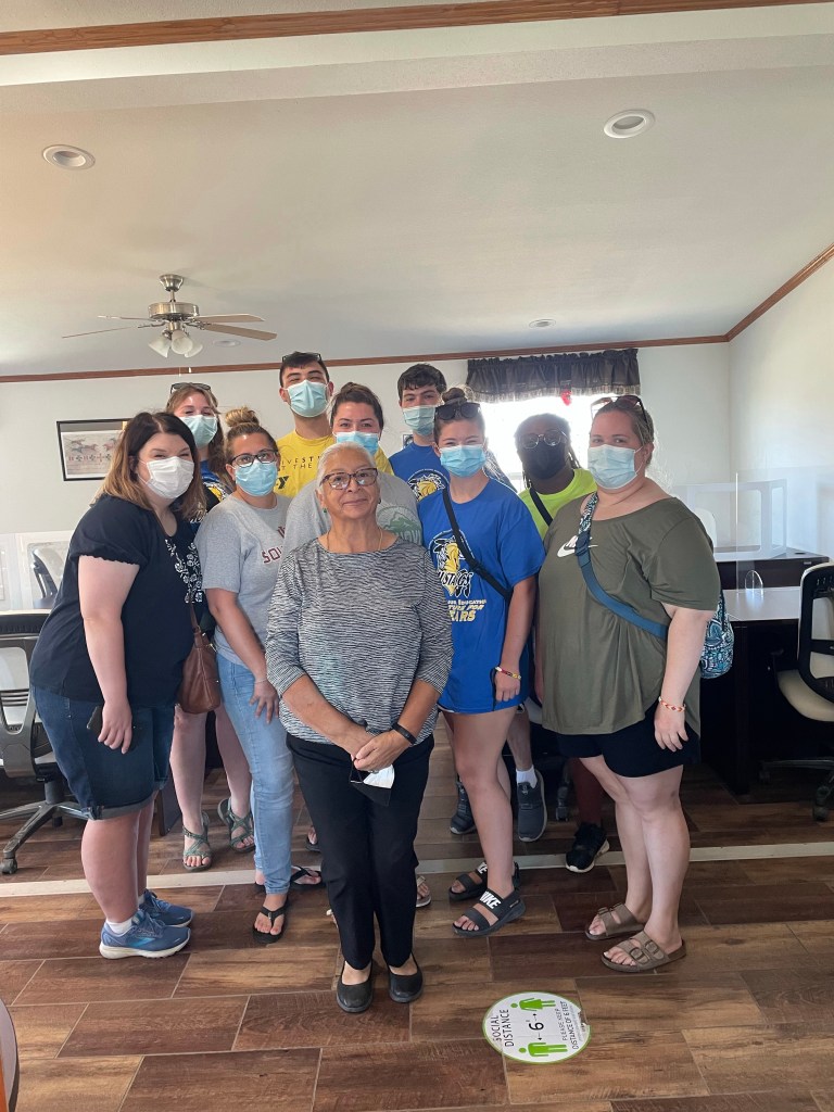 We went to see Mrs. G at the extended program at Wounded Knee School. They are getting ready to start school on Monday, 8/15 with 100% in-person classes for the first time since the pandemic began. Mrs. G talked to the students about the extended program and gave a tour of the building. In addition to dropping off our remaining donations, we were able to help get the classrooms ready a bit by cleaning desks and surfaces, and Chase and Aurora were able to get a door alarm/doorbell hung. Mrs. G gifted the students with Little Wound t-shirts and then showed us the high tunnel that is full of tomato plants and other herbs and produce. There is also corn growing just outside the high tunnel that was planted in the 3-sisters method. The extended program is very successful and such a different approach to school than what we are used to seeing–the holistic approach is one that should be replicated everywhere! I am hopeful that perhaps this coming year will allow us to visit Little Wound in the Spring for health promotion–it’s been a long 3 years since our last visit in 2019.