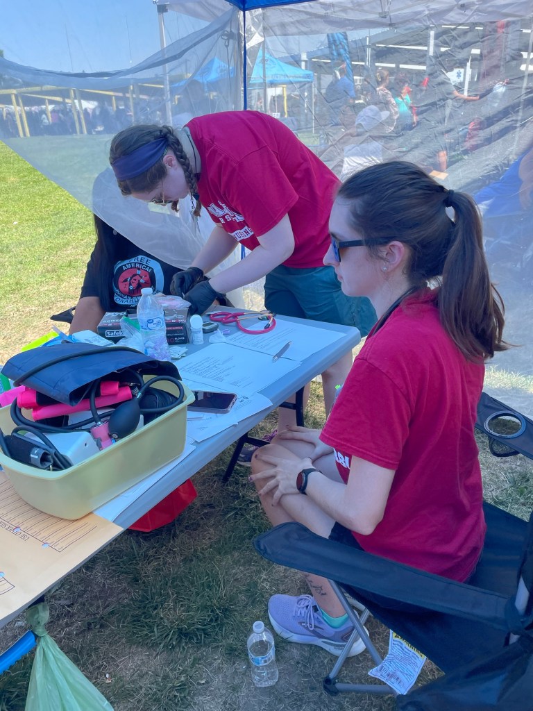 We met Ted from Re-Member, a non-profit that works on the Rez. He gave us the scoop on what to expect at the health fair, and I nearly fell over when he told us that attendance may be 1200! I let the students know that we would likely run out of screening supplies and donations and that whatever we were able to do would be good enough. It’s also VERY hot with the temp around 95. Cholesterol monitor won’t work with that temp so blood sugars and blood pressures it is.