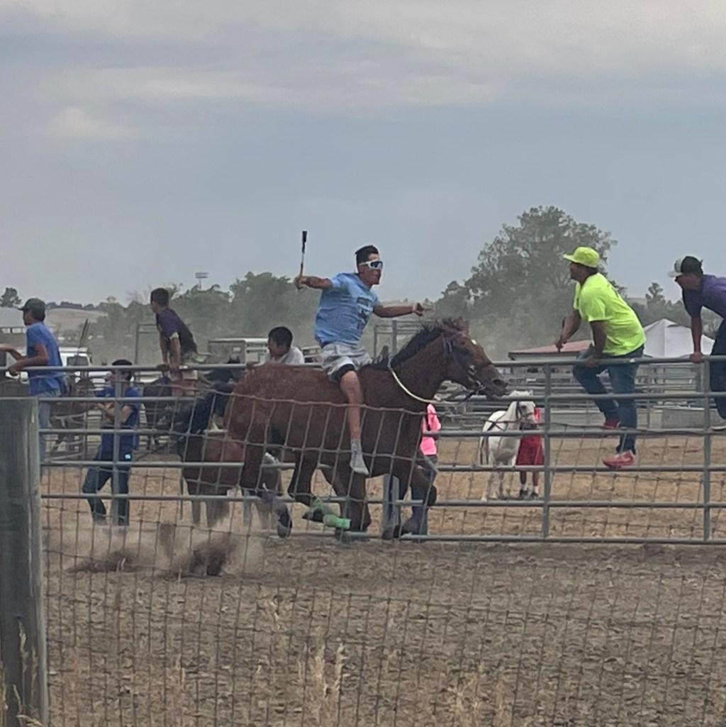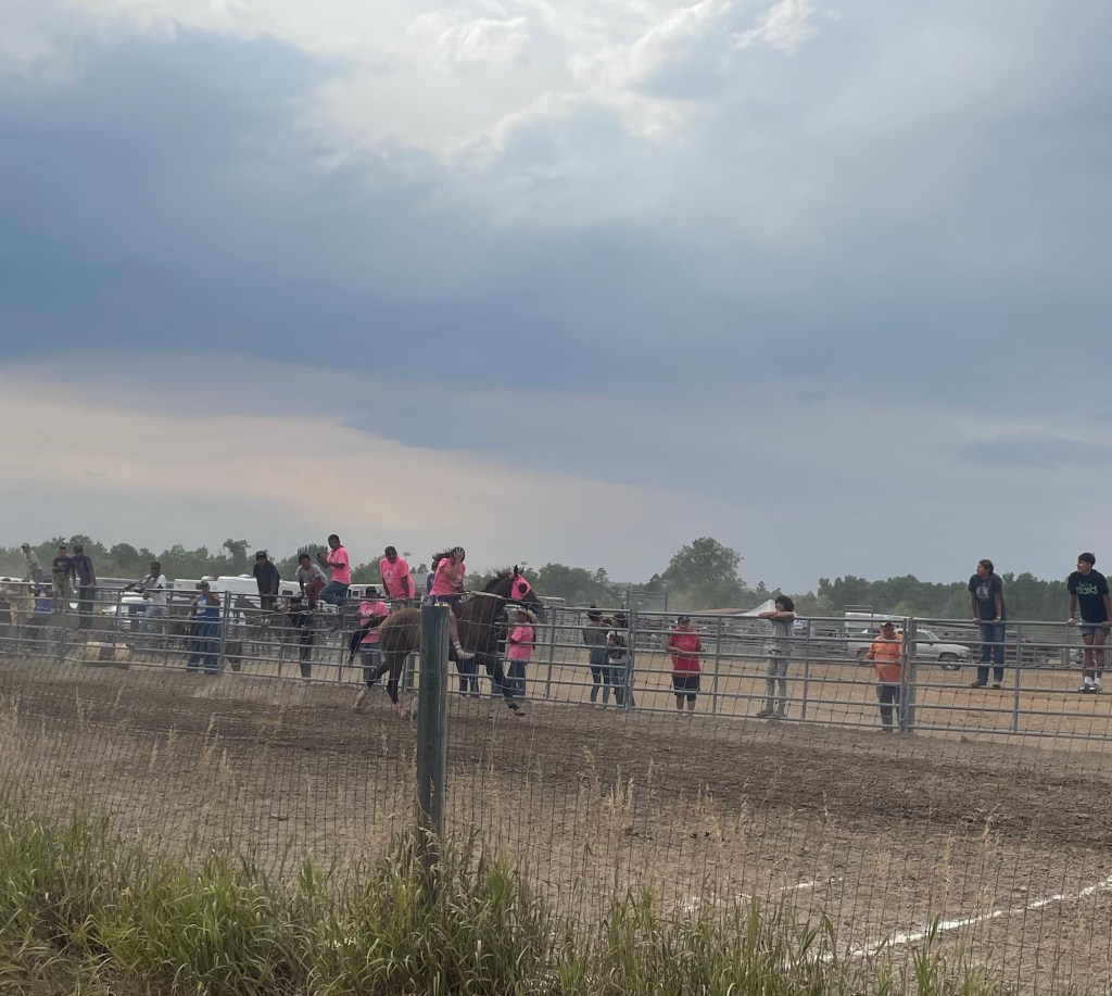 The races were exciting as always. I warned the students that I might be embarrassing with my cheering and yelling. Just like the pow wow, I recognize familiar faces, including Parker, who we first watch ride in a race at the age of two. He must be about 8 or 9 now and quite the rider. It finally got to be main event time-championship race of the relays. Unfortunately, a rider got injured on his first horse exchange. He had to stay on the track until the race was over, and then was carried out by two of the staff. The three nurses, S., E., and I, provided some simple care until EMS arrived. They sat him in one of our chairs and we applied ice to his knee. We talked to him and tried to keep him calm. From the sounds of it, he likely tore a ligament in his knee when he landed with his knee bent under him. The ambulance arrived fairly quickly from the pow wow grounds, and off he went. Another eventful day at the races doing whatever we can-plenty of little things that hopefully add up.